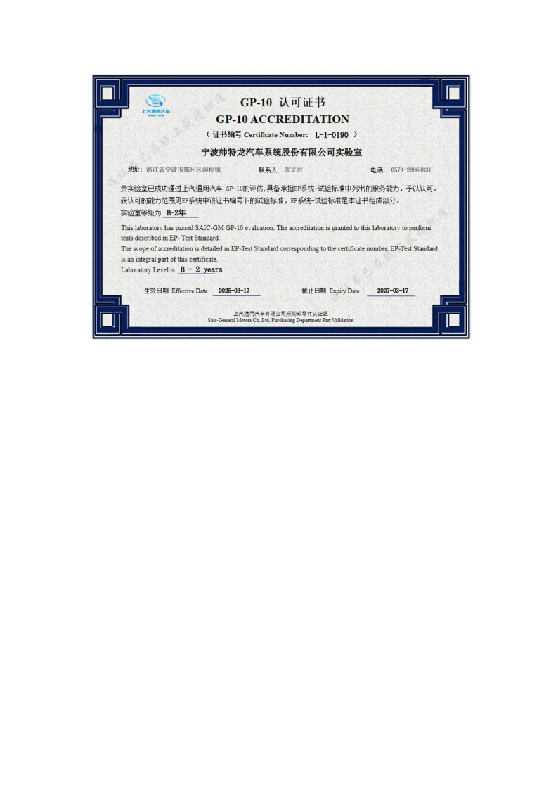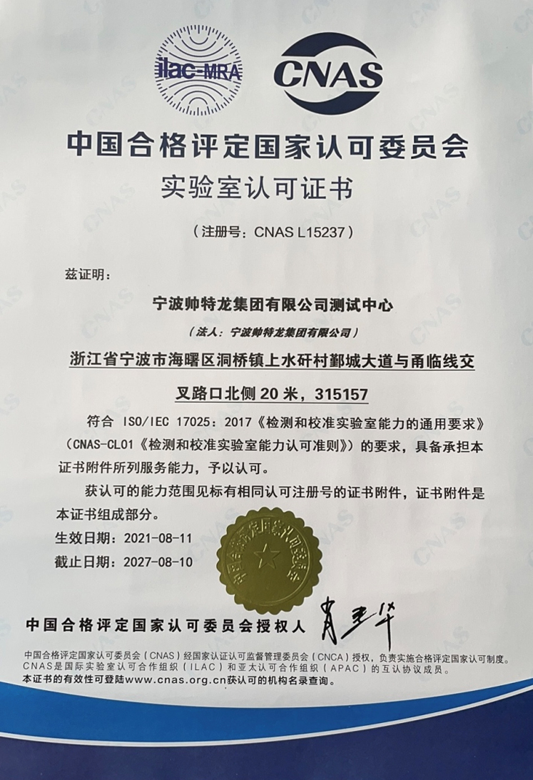 中国及格评定国家认可委员会授权的CNAS实验室认可证书